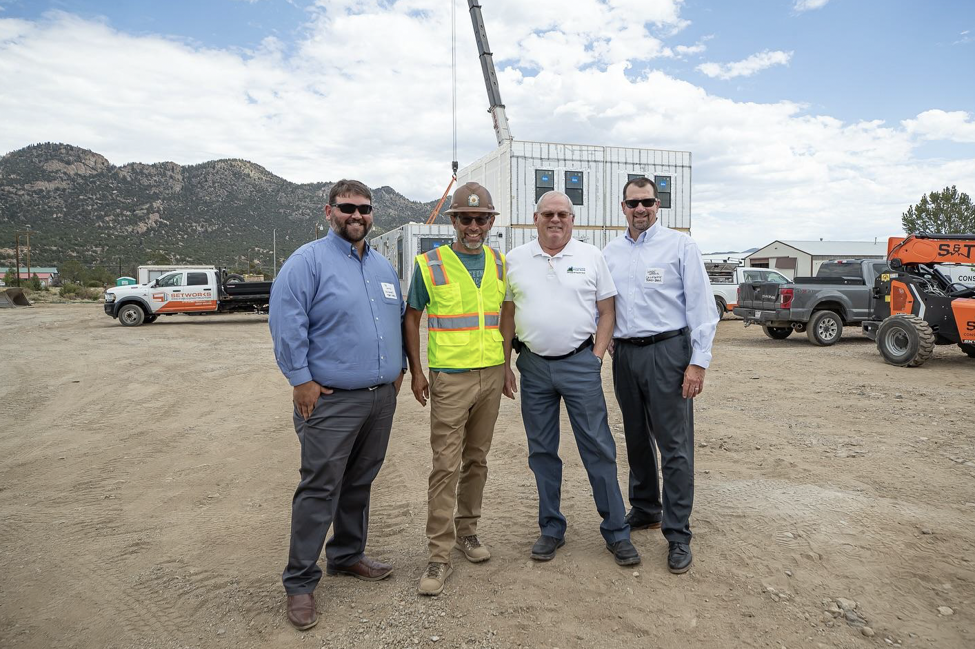 Paul with Joe Smith, Mark Moore and Wade Harris from Collegiate Peaks Bank at the “box setting” ceremony